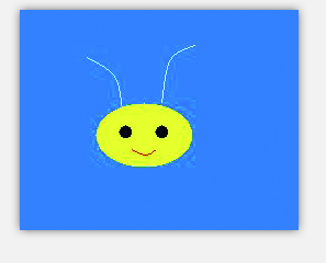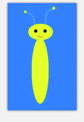 2.选择“椭圆”工具,在屏幕中央画一个椭圆(在下面的调色板中选择颜色),然后选择黑色画眼睛(在按住shift键的同时画正圆)。