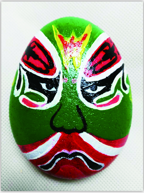 “蓝脸的窦尔敦盗御马,红脸的关公战长沙……”同学们听过这首京戏歌《说唱脸谱》吗?京剧是我国传统戏曲之一,被视为国粹,深受群众喜爱。而脸谱是京剧表演的重要道具,它通过颜色表现人物的性格,红脸表示忠诚耿直、热情吉祥;黑脸表示豪爽粗暴、刚正不阿……大家快看周卿琰同学制作的脸谱,是不是被它“萌萌哒”的表情逗笑了呢?而绿脸又代表怎样的性格,同学们可以自己寻找答案哦!