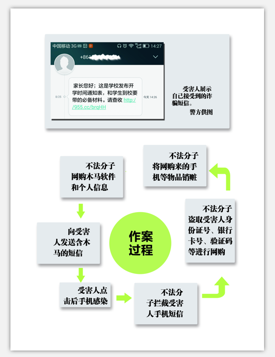 “××家长您好,我是教育局的××,这是您孩子的家庭资料(成绩单、体验结果)t.cn/RxAxdawxxd,经上级决定学生资料必须入库,请核对下载激活方可查看。”