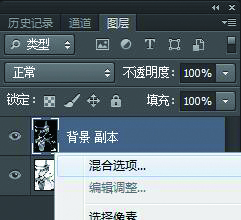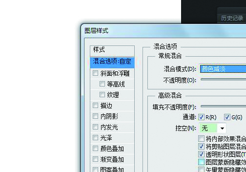 3.在新图层上右击选择“混合选项”,“混合模式”选择“颜色减淡”,此时图像全白。